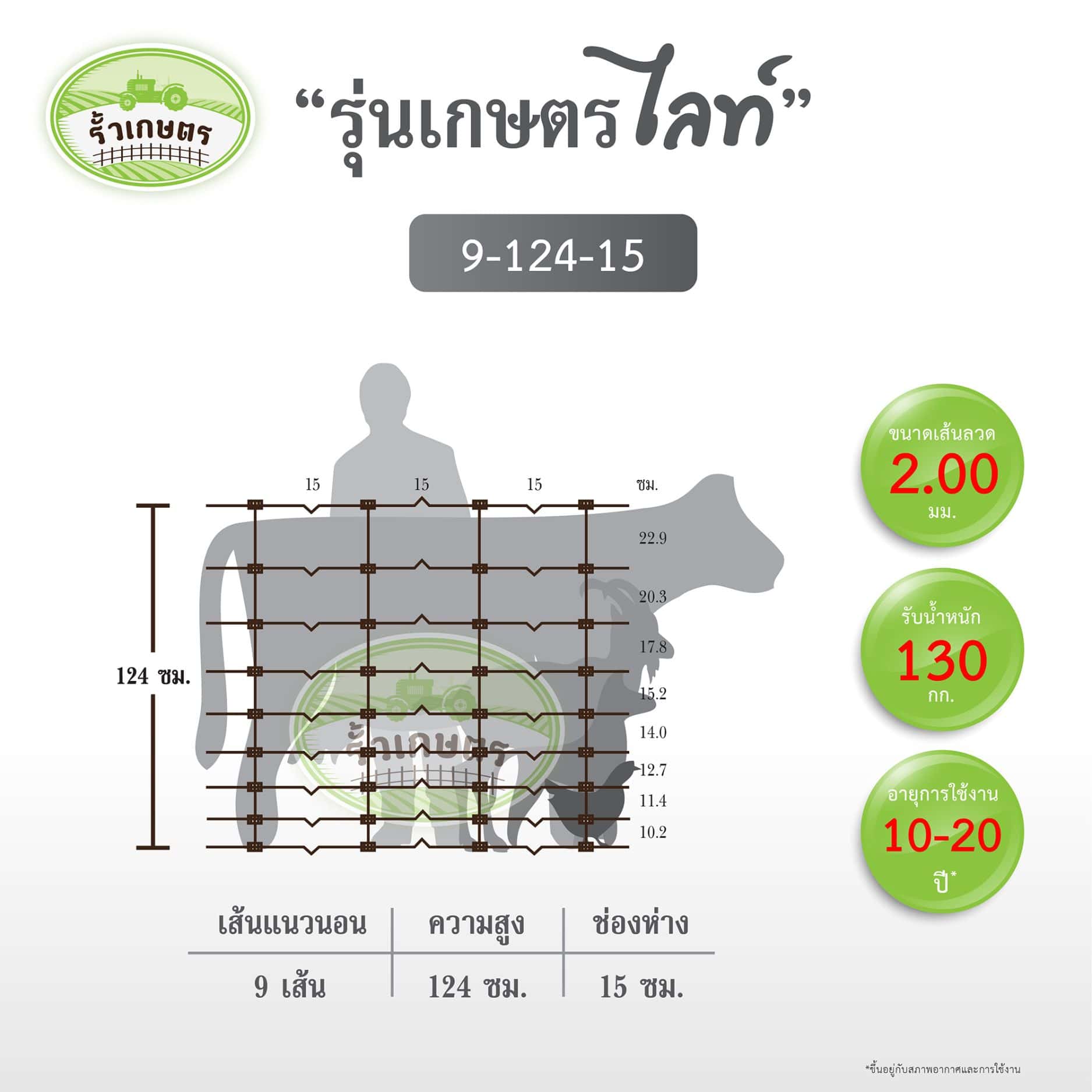 รั้วตาข่ายถักปมเกษตรไลท์ รุ่น 9-124-15