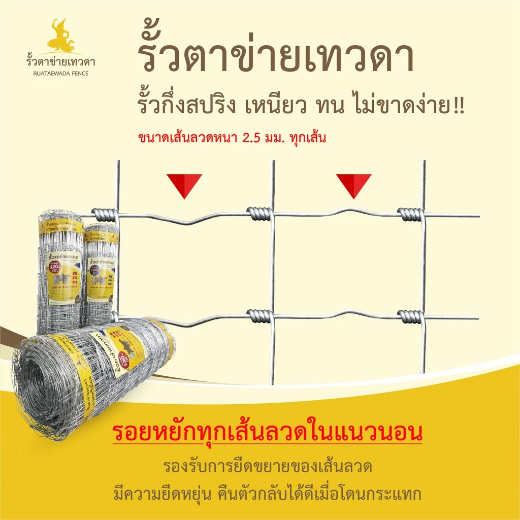 - ขนาดเส้นลวด 2.5 มิลลิเมตร (ขนาดตรงตามมาฐานรั้วตาข่าย)