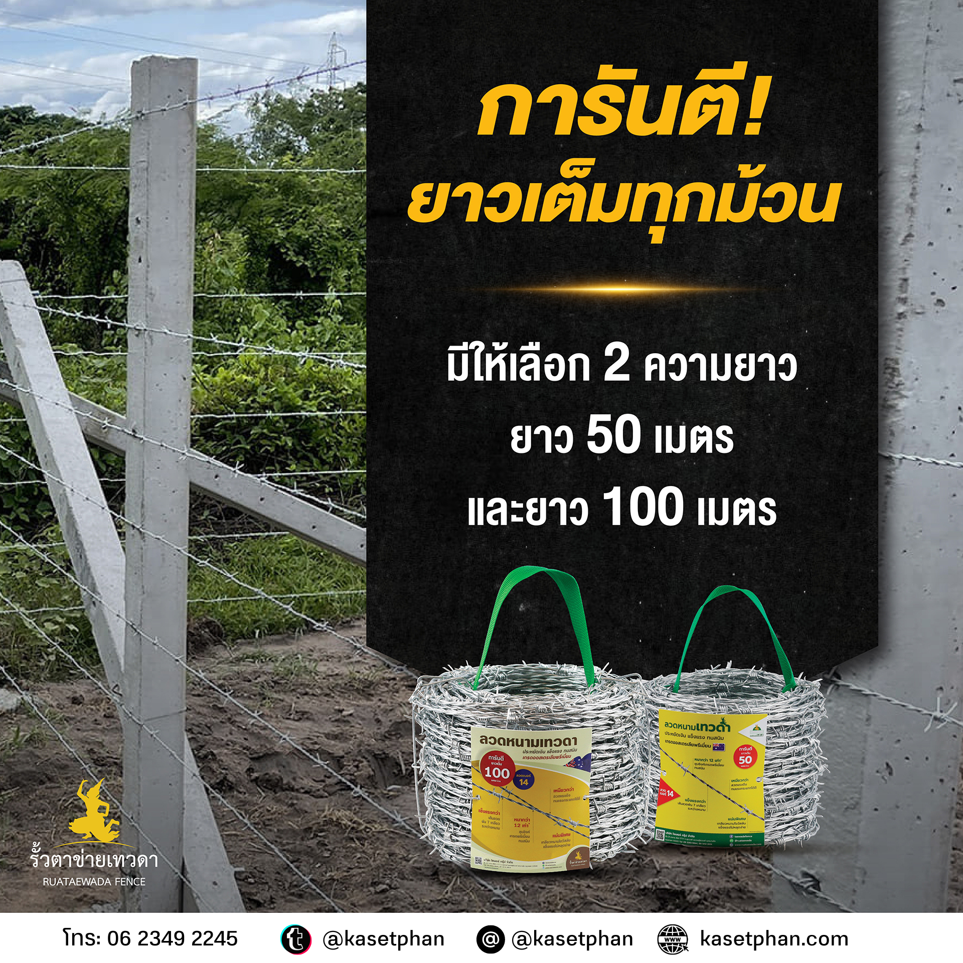 ลวดเบอร์ 14 การันตีด้วยความยาว 100 เมตร/ม้วน ทุกม้วน ดีกว่า ทนกว่า ประหยัดเสากว่า ลวดหนามธรรมทั่วไปในท้องตลาด