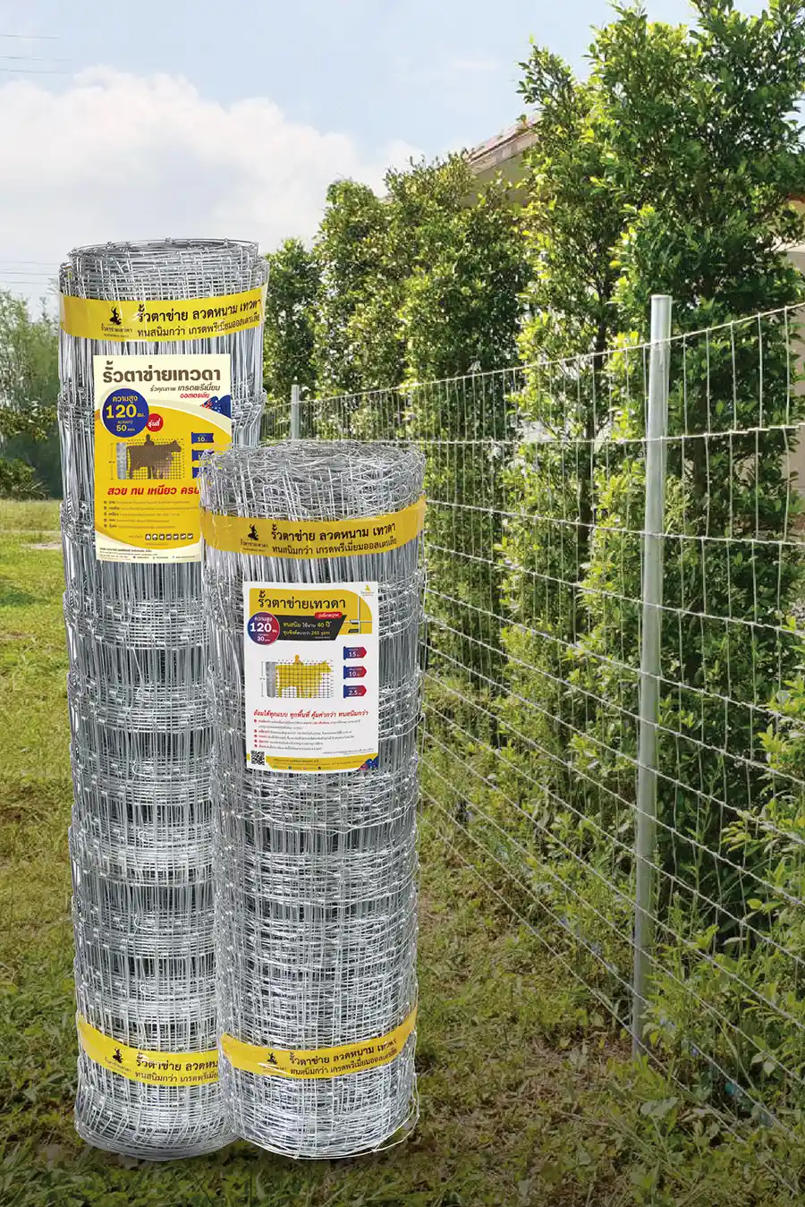 สเปคช่องแนวตั้งห่าง 10 ซม. (4 นิ้ว) ช่องแนวนอน ถี่ด้านล่าง ห่างด้านบน ทนสนิม ชุบซิงค์จุ่มร้อนหนา มากกว่า 245 กรัม/ตร.ม. ตามมาตรฐาน AS/NZs อายุการใช้งาน 40 ปี* ลวดหนา 2.50 มม. ทุกเส้น เหมาะสำหรับ ล้อมสัตว์ ล้อมแพะ ล้อมแกะ ล้อมบ้าน ล้อมสวน ฯลฯ